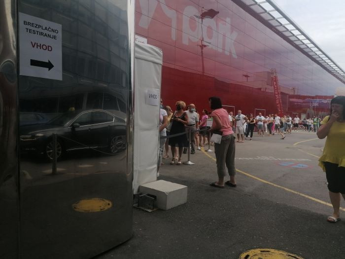 Čakalna doba pred enim od nakupovalnih centrov v Ljubljani, kjer so prvič zaračunavali testiranje je bila celo več kot 2 uri.