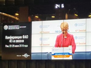 Ministrica za kmetijstvo, gozdarstvo in prehrano dr. Aleksandra Pivec je bila v torek in sredo na sedežu Organizacije združenih narodov za prehrano in kmetijstvo (FAO) v Rimu, kjer se je udeležila 41. zasedanja Konference FAO. Letošnje zasedanje je pomembno tudi zaradi volitev novega generalnega direktorja, ki bo prevzel vodenje organizacije za naslednja štiri leta.