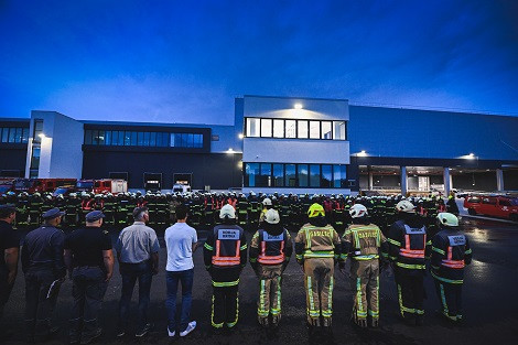V požarni vaji, ki se je včeraj, 8. avgusta 2019, odvijala na objektu novega logističnega centra Lidla Slovenija v gospodarski coni Arnovski gozd, je sodelovalo 15 prostovoljnih gasilskih društev in poklicni gasilci iz Celja, skupno več kot 200 gasilcev s kar 33 gasilskimi vozili.