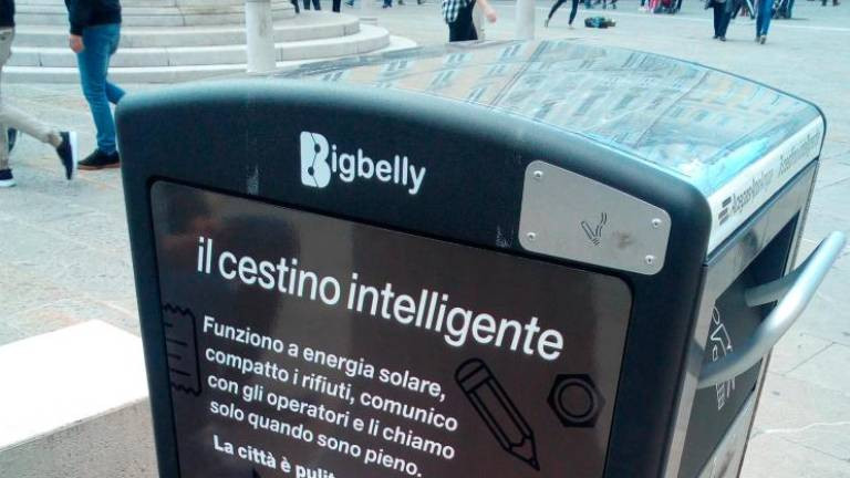 Podjetje AcegasAps je v mestu takrat postavilo posebna testna stiskalna smetnjaka na sončno energijo, ki sta neposredno povezana z operativnim centrom: ko sta polna, takoj pošljeta sporočilo podjetju, ki bo smetnjak čimprej spraznilo.