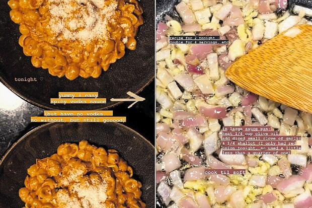 Manekenka Gigi Hadid, ki ima več milijonov sledilcev na družabnih omrežjih ima rada kuhanje in objavlja recepte na spletu. Med zadnjimi so bile testenine z omako, v kateri je tudi vodka.