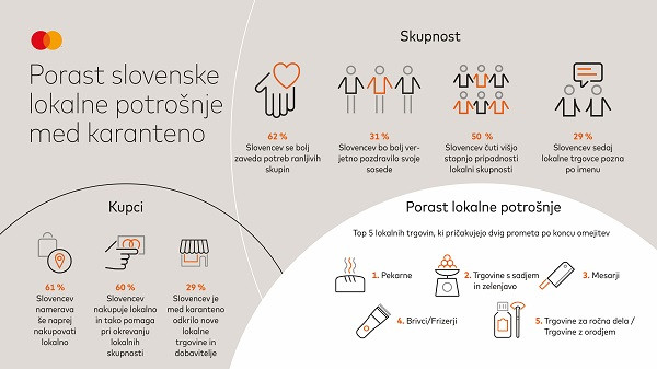 Po podatkih Mastercard raziskave je 60 odstotkov slovenskih kupcev dejalo, da bo tudi po koncu karantene skušalo nakupovati v svojem lokalnem okolju in tako pomagati neodvisnim prodajalnam v svoji soseščini, skoraj vsak tretji (29 odstotkov) pa je med karanteno v svoji okolici odkril nove trgovine.