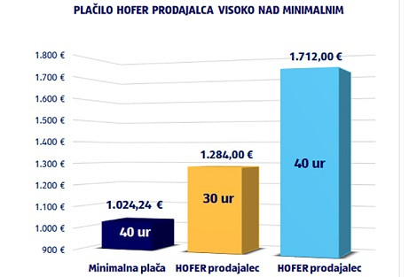 Hoferjeva prodajalka oz. prodajalec tako za 40 ur/teden prejme 1712 evrov bruto, s čimer njihovo plačilo za 67 % presega minimalno plačo. V dveh letih pa se je plačilo Hoferjeve prodajalke oz. prodajalca povišalo za kar 25 %. Tudi letos bo zaposlene razveselil regres v višini kar 1700 evrov.