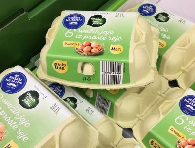 Ves november so bile škatle z BIO jajci in jajci Naše nam paše v vseh trgovinah Lidl Slovenija opremljene z modrimi nalepkami 'Ne pozabi na jajca'.