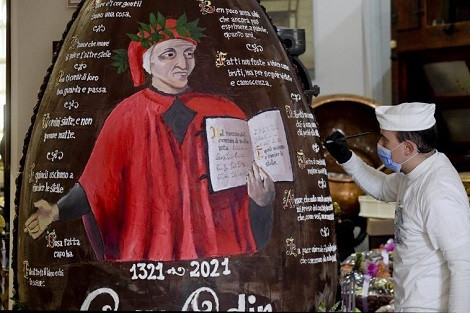 Omenjena neapeljska čokoladnica posebno čokoladno jajce ob veliki noči izdeluje že 20 let, vsako leto pa ga okrasi s podobami, ki jih navdihujejo aktualni dogodki, med katerimi je letos 700. obletnica Dantejeve smrti.