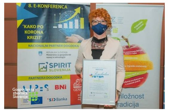 Na fotografiji je prejemnica priznanja Pomladni veter in direktorica KZ (Kmetijske zadruge) Metlika z.o.o., Tatjana Malešič, direktorica.
