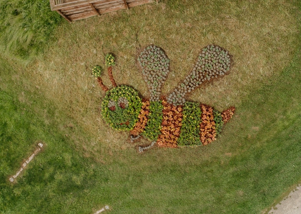 S pomočjo Arboretuma Volčji Potok je z novo zasaditvijo v parku tako nastal živi spomenik, ki je v stilizirani obliki čebele sestavljen iz medovitih rastlin.