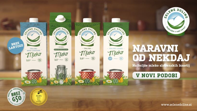 Mleko Zelene Doline brez GSO vas od te jeseni na policah pričakuje v novi, prepoznavni embalaži, ki sledi prenovljeni podobi izdelkov, povezanih pod sloganom "Naravni od nekdaj."