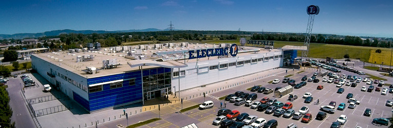 Zgodba francoskega trgovca v Slovebiji sega v junij 2000, ko se je na Rudniku odprl prvi ljubljanski E.Leclercov hipermarket, leta 2007 pa so na 5000 kvadratnih metrih površine svoj hipermarket dobili tudi v Mariboru.