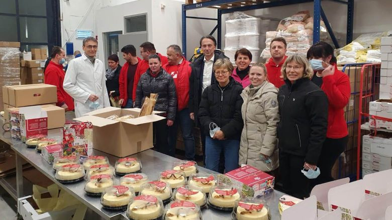 Da so lahko zagotovili pravočasno dostavo v vsako Mercatorjevo enoto in obdarili vsakega zaposlenega, so na pomoč priskočili motivirani sodelavci iz Mercatorjeve režije, ki so torte spakirali v posebno oblikovane škatle, ob tem pa so se še prijetno družili.