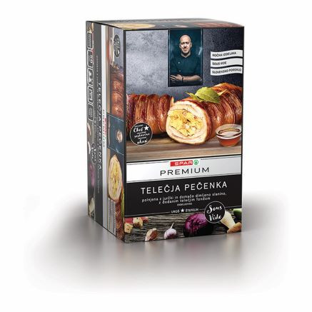 Prva je ročno dvojno zavita potica z dvema bogatima nadevoma – orehovim in skutnim. Zamešena je iz slovenske ajdove in pšenične moke, za dodatno popestritev sladice pa poskrbijo tudi koščki hruške in cvetlični med, s katerim je sladkana. Druga izmed specialitet po recepturi Uroša Štefelina pa je telečja pečenka, polnjena z jurčki in domačo dimljeno slanino, ki jo poleg izjemnega okusa in arome odlikuje tudi enostavna priprava. Za izredno mehkobo mesa slovenskega izvora je uporabljen tako imenovani sous vide postopek, pri katerem se vakuumirano meso počasi kuha pri nizki temperaturi. Po slabi uri pečenja se pečenko postreže z omako iz telečjega fonda Spar Premium, ki je dodan pakiranju.