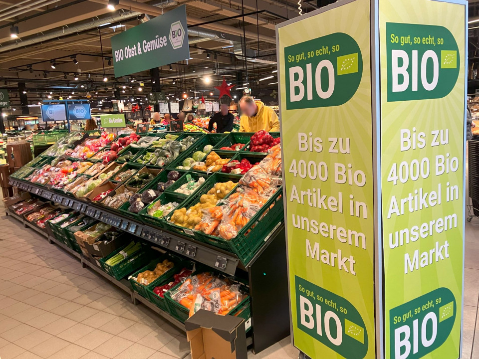 Oddelek sadja in zelenjave se nahaja takoj ob vhodu, brez vsakršnih ovir in vsebuje eno največjih ponudb ekološkega sadja in zelenjave med nemškimi trgovci.