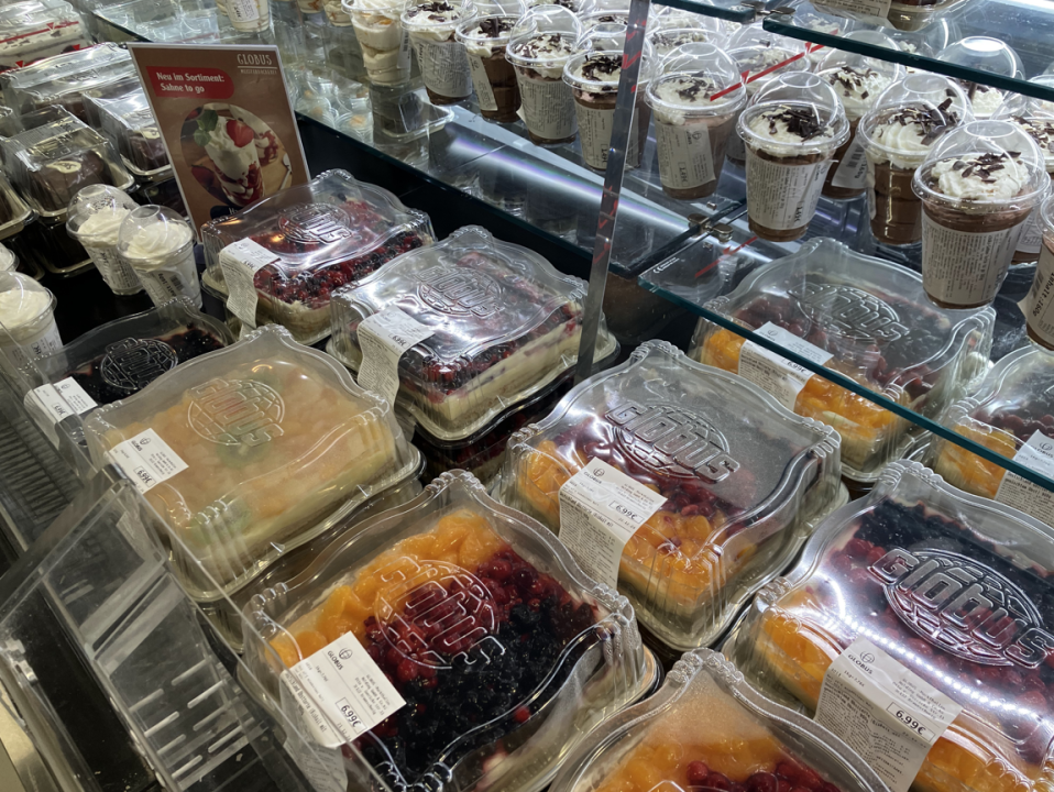 Na svežih oddelkih Globus poudarja dobro razmerje med ceno in kakovostjo, saj predstavljajo izdelke po tradicionalnih recepturah in po trajno nizkih cenah, kot je npr. nemški sirov kolač.